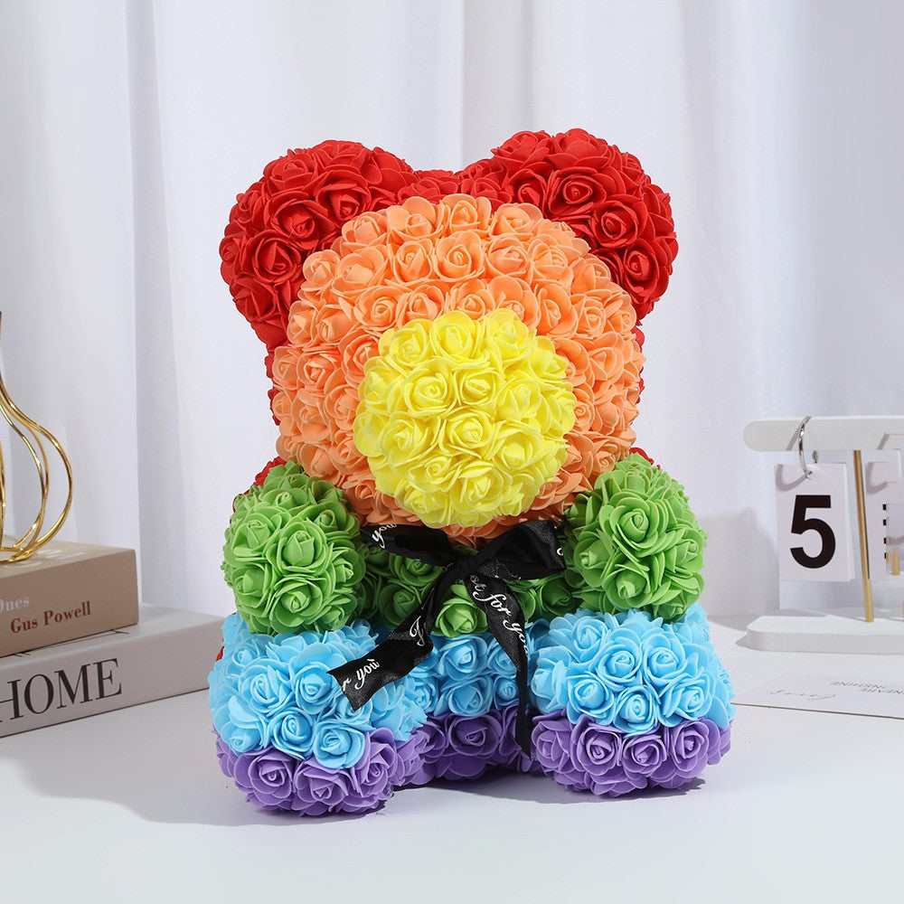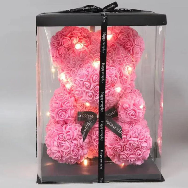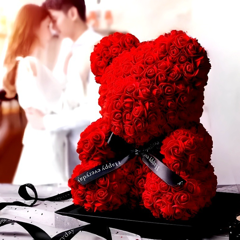 Urso de Rosas é o presente ideal para expressar amor e carinho de forma elegante e inesquecível. Feito com flores artificiais em formato de rosa, combina beleza e delicadeza em um único item.